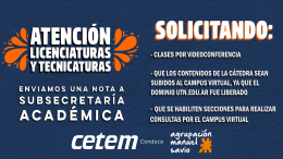 Desde la Agrupación Manuel Savio (claustro estudiantil) enviamos una nota dirigida al Sr. Decano y a los/as consejeros/as del Consejo Directivo de la Regional Mendoza.Entendiendo la situación que atravesamos, hemos decidido enviarla en formato de…