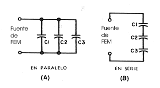 Si C1 = C2 = C3 = 100 uF, cuál es la capacidad equivalente en cada caso?