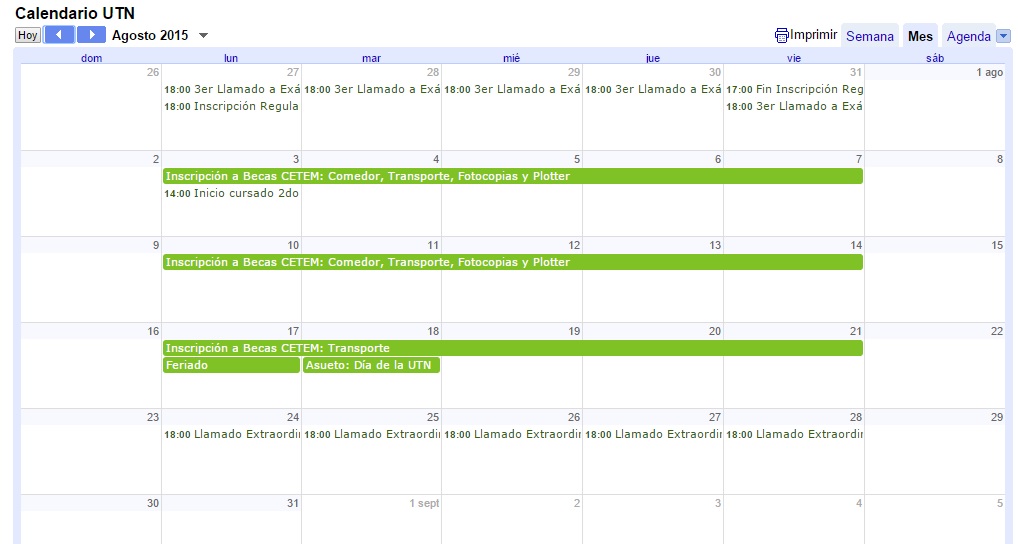 Calendario Web: creamos un calendario web, al cuál podés acceder y enterarte de todas las fechas importantes (mesas de exámenes, semanas de consulta, etc.)