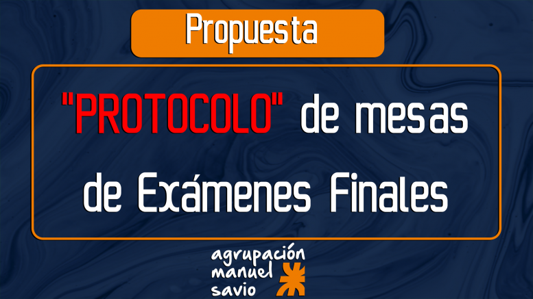 Como Agrupación Manuel Savio, el día 22 de Abril, presentamos al Decano de la FRM y a lxs integrantes del Consejo Directivo una propuesta de Protocolo de Exámenes finales. Aquí abajo podés leer la nota junto con el protocolo que presentamos o descargarlas.