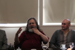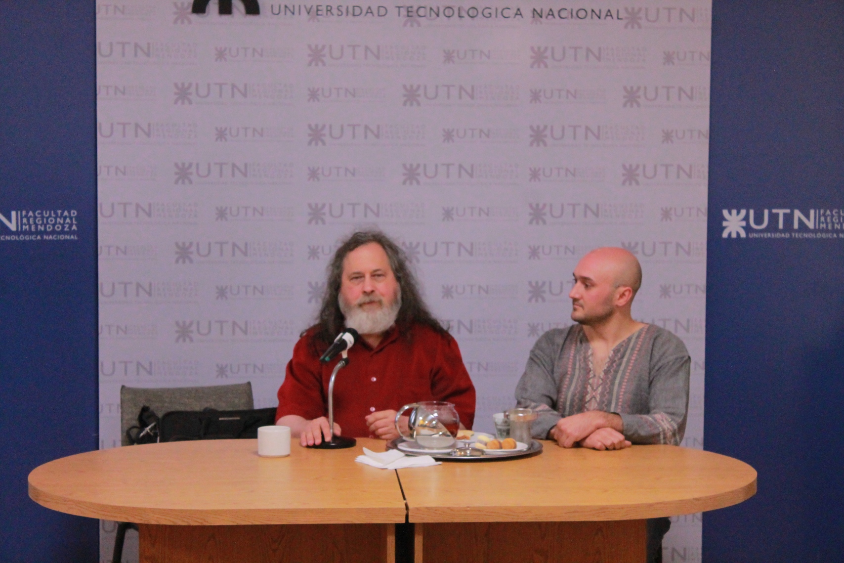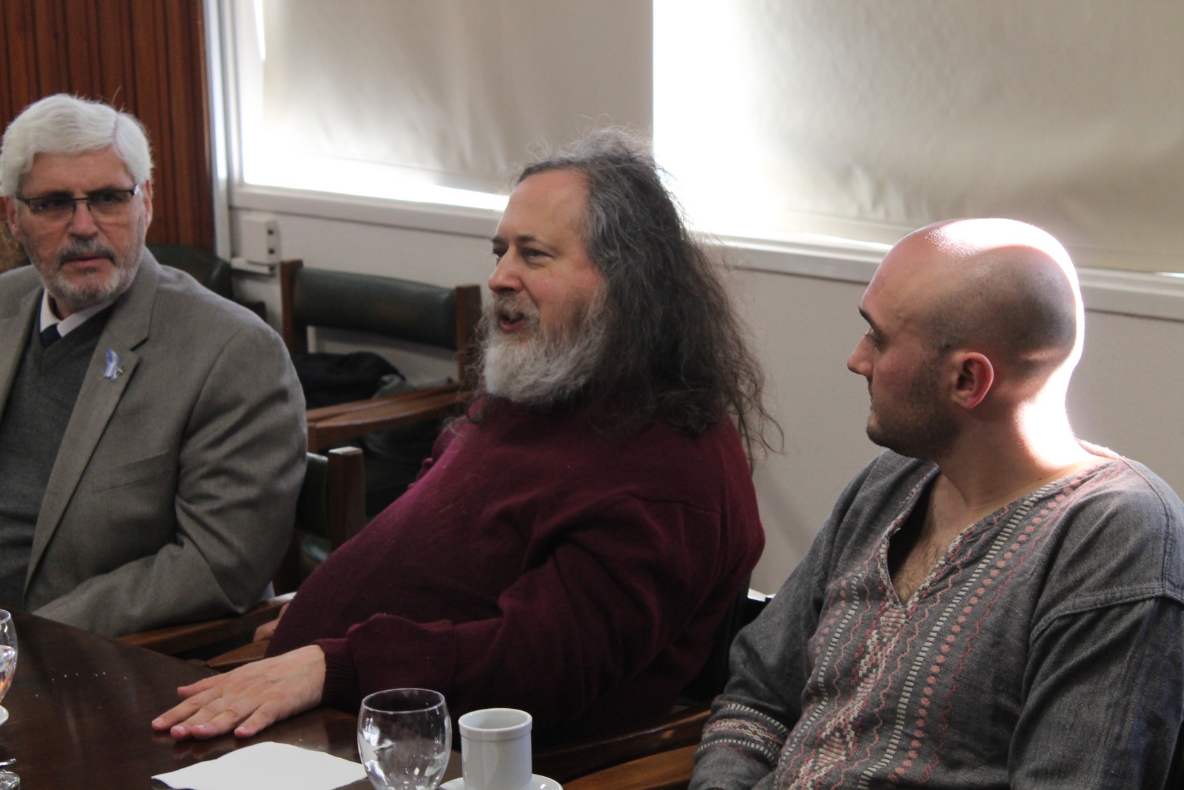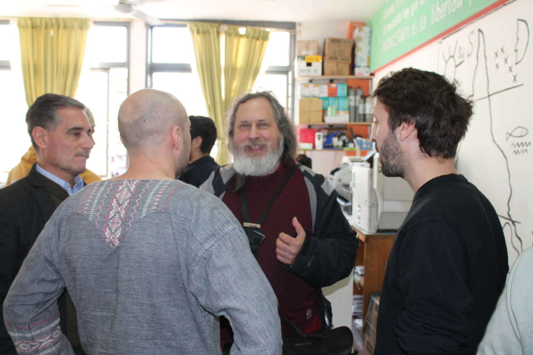 Luego, estuvo reunido con autoridades, charlando sobre las ventajas del Software Libre. Destacó los valores de solidaridad y compartir conocimiento.